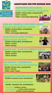 Hilaren 26an, Larunbata, haurren txanda izango da Ixabel ipuin kontalariaren emanaldiarekin arratsaldeko 17:00etan, eskolan. 19:30ean, berriz, Bankako Menditarrak taldeak kantaldia eskainiko du.