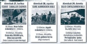 Antolatzaileek iragarri dutenez, “bigarren harri-koxkorra”, bihar, hilak 28, izango da Urrats galduen herria izeneko hitzaldiarekin. “Hea ez da sekula paradisua izan. Herri xeheak izerdiak bota ditu itsasoan, baserrian, burdinolan eta errotetan bizimodua ateratzeko”. Gure jendartearen memoria poetiko kolektiboa berrosatzea da Iñigo Aranbarri idazlearen proposamena.
