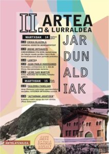 Martxoaren 14an eta 15ean egingo dituzte jardunaldiak eta bertan izango dira: Erika Olaizola aktorea, Irene Intxausti Teklak elkarteko kidea, Leire San Martin Tabakalerako hezkuntza arduradura, J.P. Huercanos eta Aitziber Urtasun Oteiza museoko zuzendariordea eta hezkuntza arduraduna.