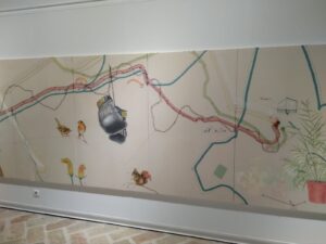 Erakusketaren jatorria bi artisten proposamen bat da, hizkuntzak eta narrazioak nahasteko, eta horretarako esperientzia partekatu baten bidez errealitatea eta fikzioa bateratzen dituzte. Hasierako ideia horietatik sortu zen lehen kolaborazioa, alegia, obra batean islatzea egunero Santa Marta kalean zuten lantegitik Uharte Arte Garaikidearen Zentroraino oinez, autoz edo autobusez egiten zuten ibilbidea. Zenbait hilabetez, ibilbide horretan bizitako esperientziak eta elkarrizketak bildu zituzten, eta horiekin pieza handi bat gauzatu zuten, zeina handitzen joan zen, hizkuntzak eta partekatutako esperientziak nahasten dituen hamar metroko mural handi bat osatu arte.
