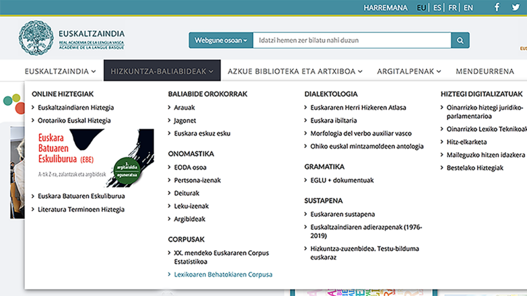 Corpus etiketatua eta automatikoki lematizatua da, eta horrek modua ematen du hizkuntzaren erabilera hurbiletik jarraitzeko.