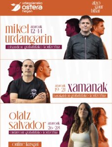 Azaroaren 12tik 28ra bitartean egongo dira kontzertu guztiak denontzat ikusgai Udagoieneko Ostera zirkuituaren webgunean. Ostiralero kontzertu bat estreinatuko da eta asteburuan zehar, webgunean egongo da eskuragarri: azaroaren 12tik 14ra, Mikel Urdangarin Otxandion; azaroaren 19tik 21era, Xamanak Barakaldon eta azaroaren 26tik 28ra, Olatz Salvador Ondarroan.
