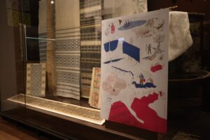 Horren osagarri, ikusizko narrazio bat aurkezten duen liburuxka bat dago, ehungintzari lekuko garaikideen ikuspegitik heltzen diona. Artistaren eta Donostiako eta Errenteriako bi neraberen arteko elkarrizketa batean oinarrituta dago. Fantasia pertsonalak kontatzen ditu, San Telmoko gurutze-puntuko brodatuak aztertzen ditu, eta loturak ezartzen ditu historia kolonialaren, genero-rolen eta Europako ehun-enpresen ekoizpen-kate globalen dinamikaren eta gaur egungo brodatutako moda-oldearen artean. Josune Urrutia ilustratzaileak artistarekin batera garatu zuen gidoi grafikoa, eta bereak dira ondoren egindako marrazkiak ere. Bisitariei ale bat eramateko gonbita egiten zaie.