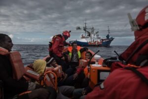 Erakusketa berriak U formako sei egitura ditu, bakoitza bi metro zabal eta metro bat eta laurogei metro garai diren hiru argazki olanez osatuak. Egitura bakoitzak errealitate bati erreparatzen dio, hurbilagokoa edo urrunagokoa, “gure mugan hartutako irudiak erakusten baititu, baina baita Melillan (Estatu espainiarra), Lesbosen (Grezia), Zarzisen (Tunis), Angersen (Estatu Frantsesa), Biella eta Pozallon (Italia) edo Mediterraneoan ere. Irudien artean, hain zuzen, 2019ko azaroan Aita Marik egindako lehen erreskate-operaziokoak daude”, adierazi dute argazkilariek.