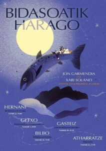 Azpiazuk azaldu duenez, “afixan izokin bat agertzen da, Bidasoatik Urumeara salto egiten duena, bi arro hauetan garrantzi handia duen izaki bat izanik sinbologia aproposa duelako. Oso maitea dut, berezia da niretzat, euskal kulturaren iturburu. Irudian, jaiotetxera itzultzen da izokina, kantu hauen letren atzean dauden artistak bezala”.